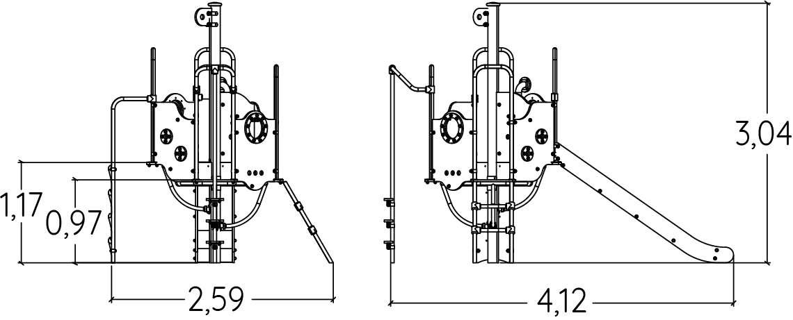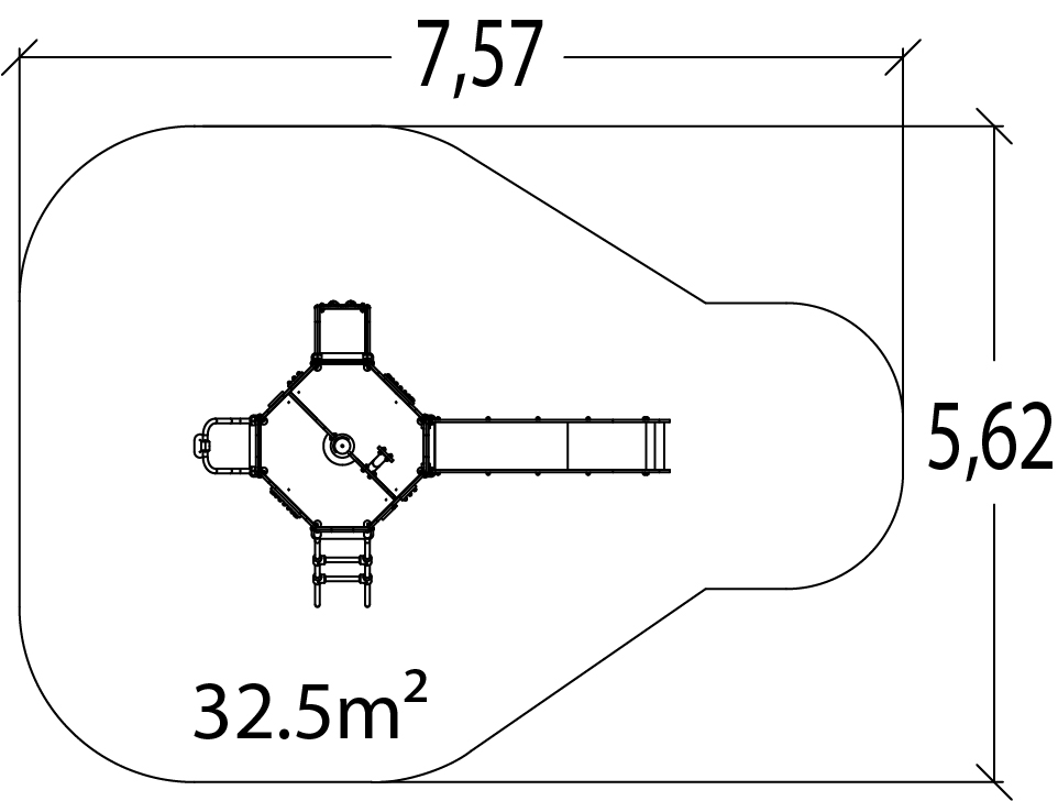 Wymiary modułu to: 4,12 m długość, szerokość: 2,60 m, wysokość: 3,02 m. Wysokość swobodnego upadku wynosi 1,30 m.