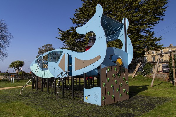 Wieloryb - Gigantyczne urządzenie placu zabaw ze ściankami wspinaczkowymi, elementami siatkowymi, zjeżdżalnią i panelami do zabawy - J2696®
