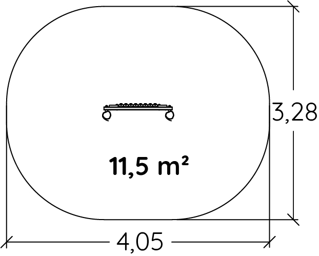 Wymiary modułu to: 1,14 m długość, szerokość: 0,26 m, wysokość: 1,40 m. Wysokość swobodnego upadku wynosi 0,60 m.