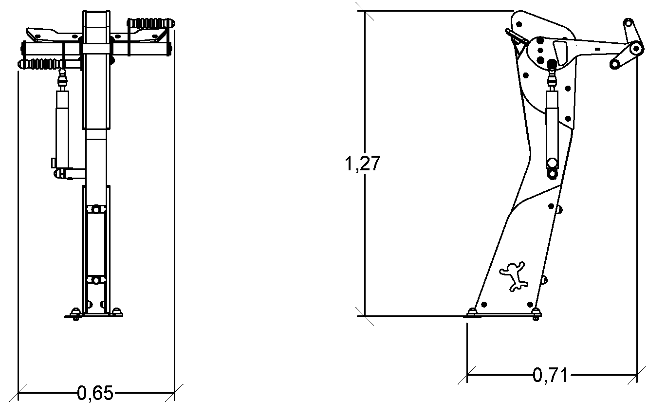 Wymiary modułu to: 0,70 m długość, szerokość: 0,65 m, wysokość: 1,27 m. Wysokość swobodnego upadku wynosi 1,30 m.