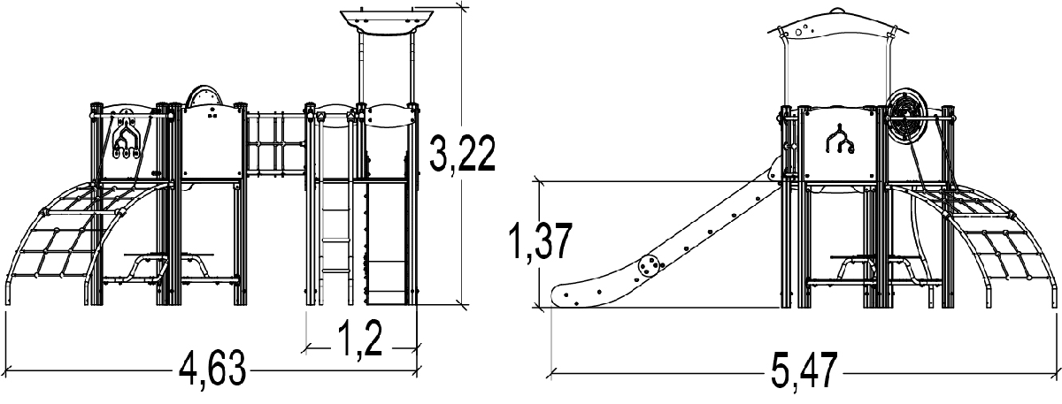 Wymiary modułu to: 5,47 m długość, szerokość: 4,44 m, wysokość: 3,22 m. Wysokość swobodnego upadku wynosi 2,10 m.