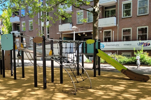 Zielono-niebieskie wielofunkcyjne wyposażenie wspinaczkowe ze zjeżdżalnią i mostem linowym - J38108-C