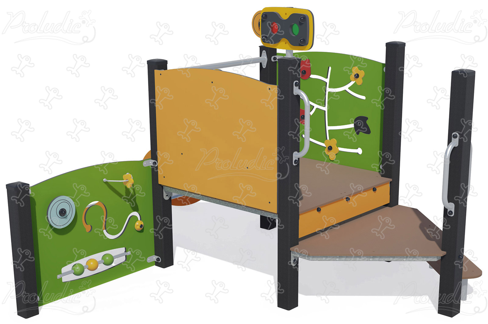 Wielofunkcyjne wyposażenie z panelami do zabawy i zjeżdżalnią - J38125