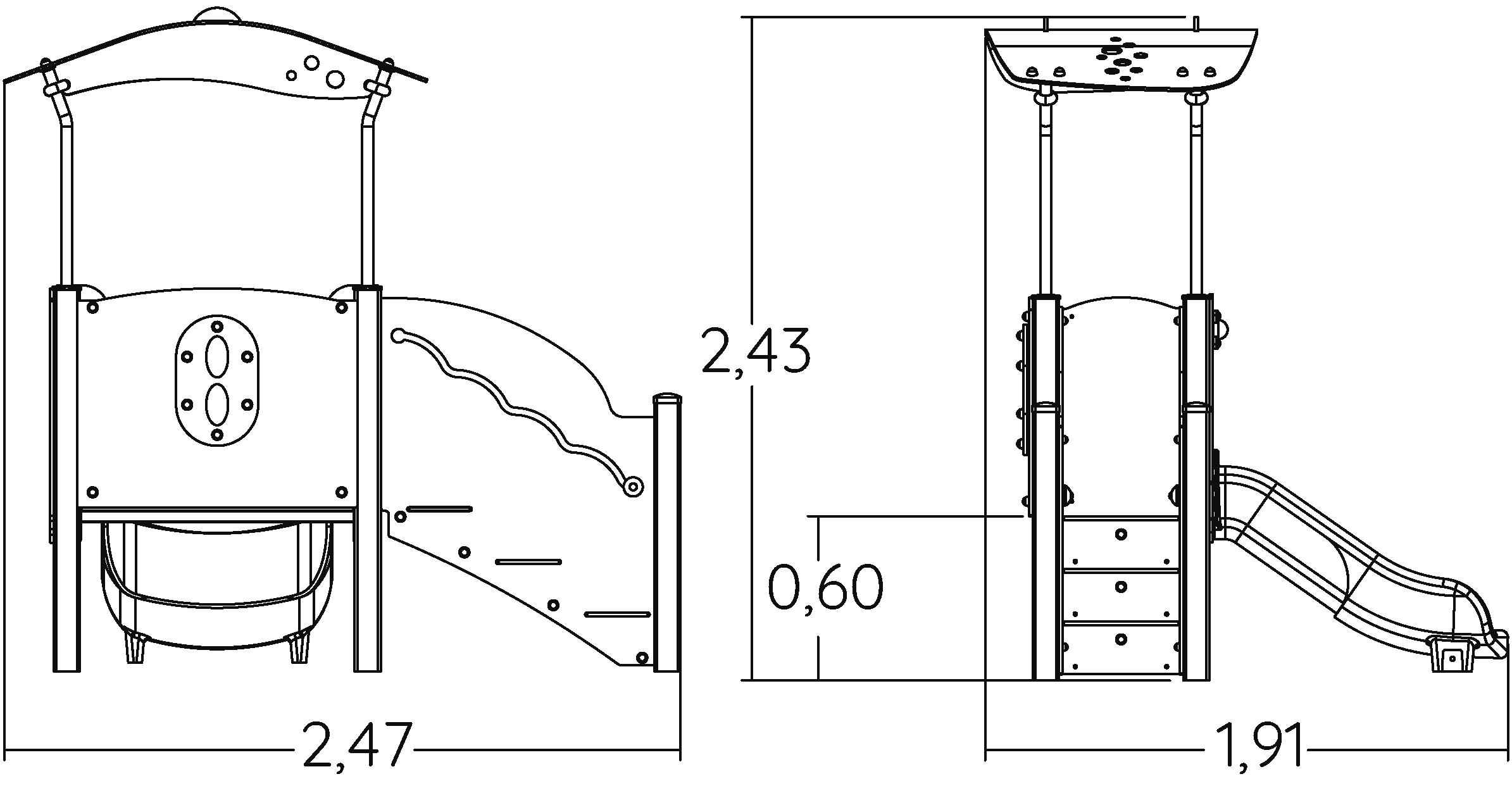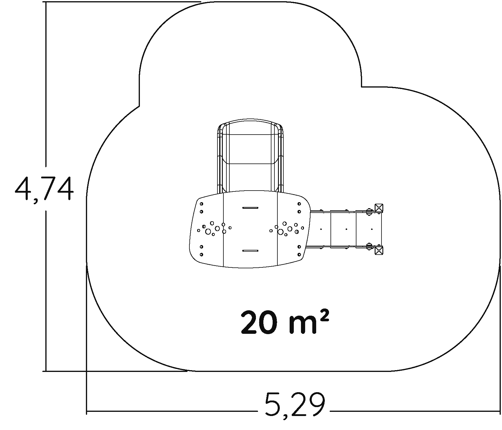 Wymiary modułu to: 2,47 m długość, szerokość: 1,91 m, wysokość: 2,43 m. Wysokość swobodnego upadku wynosi 1,00 m.
