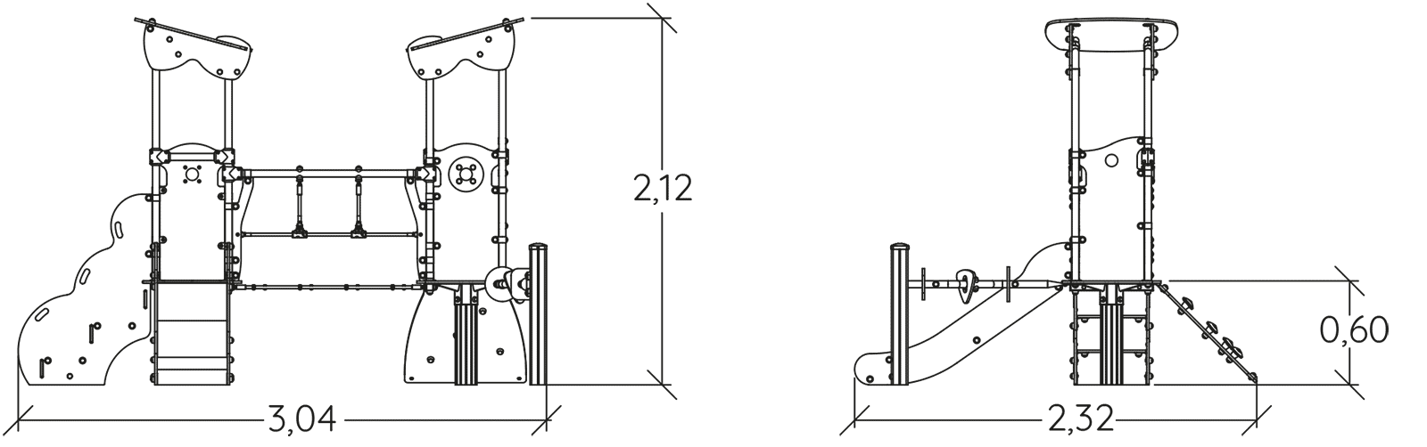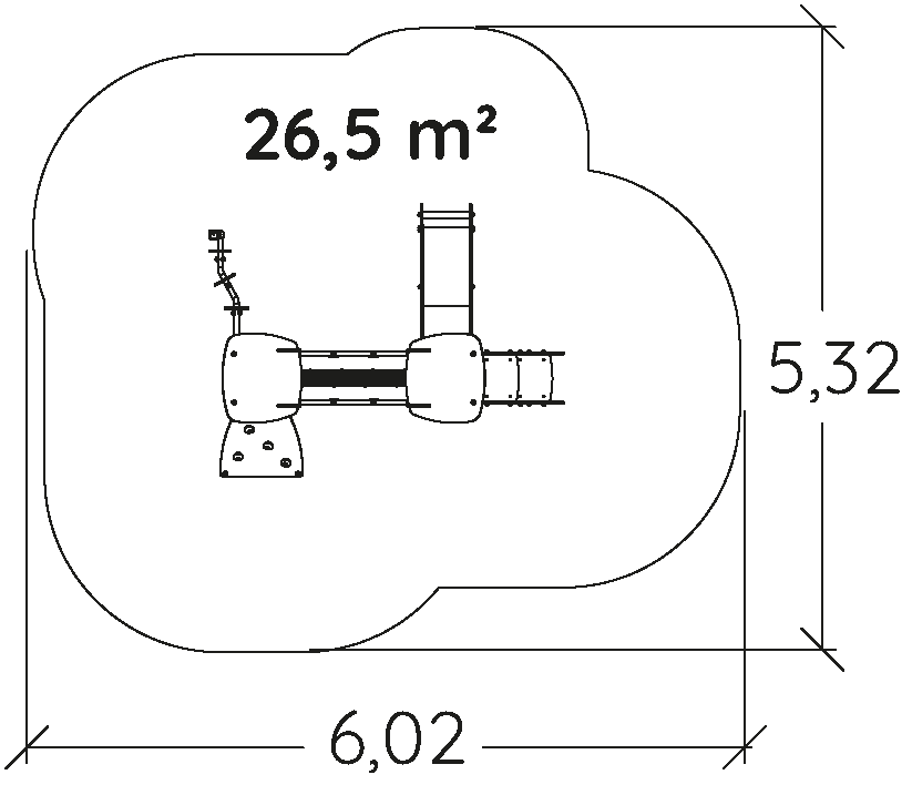 Wymiary modułu to: 3,02 m długość, szerokość: 2,32 m, wysokość: 2,12 m. Wysokość swobodnego upadku wynosi 1,00 m.