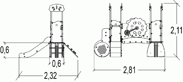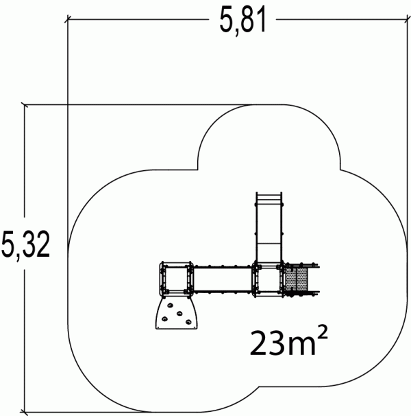Wymiary modułu to: 2,81 m długość, szerokość: 2,32 m, wysokość: 2,11 m. Wysokość swobodnego upadku wynosi 1,00 m.