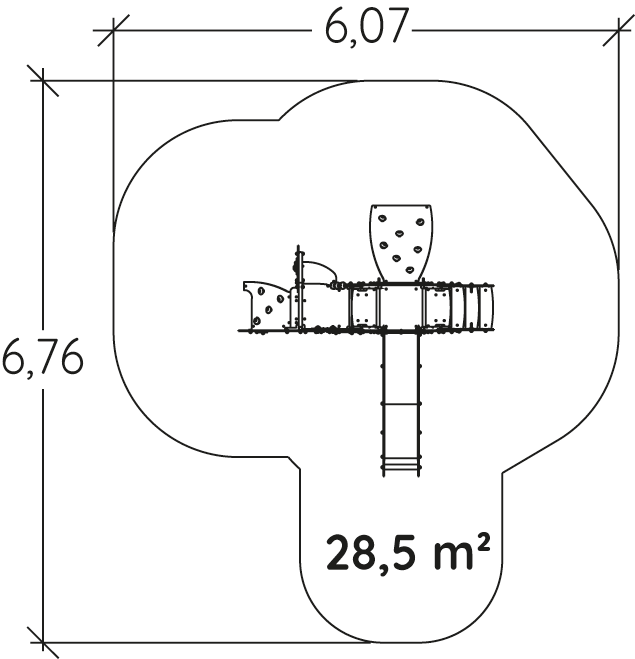 Wymiary modułu to: 3,26 m długość, szerokość: 3,07 m, wysokość: 2,59 m. Wysokość swobodnego upadku wynosi 1,00 m.