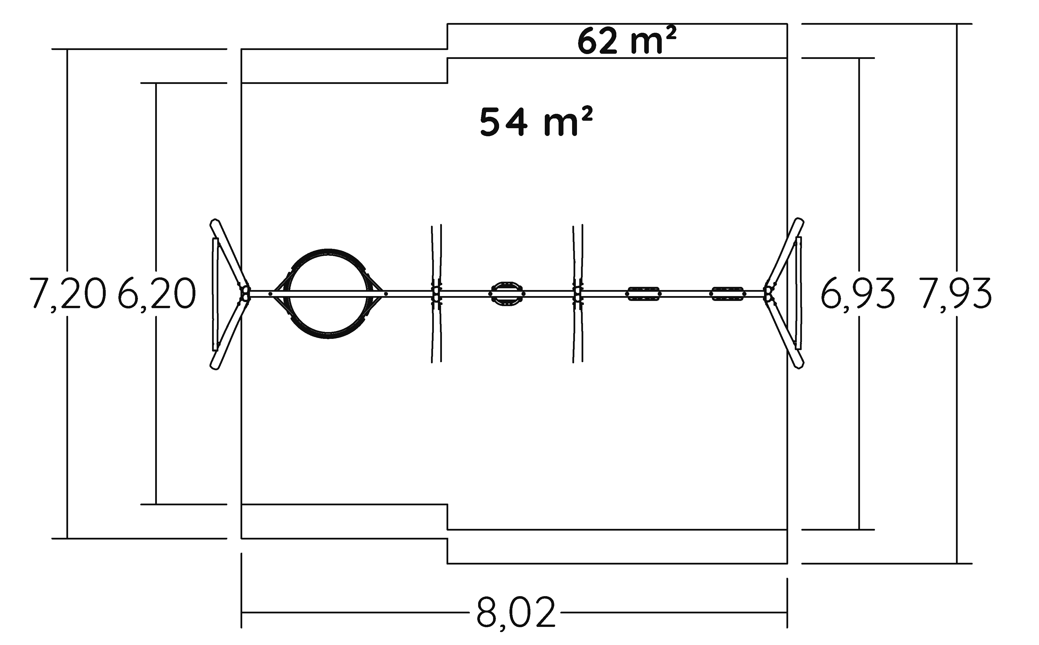 Wymiary modułu to: 8,72 m długość, szerokość: 2,21 m, wysokość: 2,60 m. Wysokość swobodnego upadku wynosi 1,55 m.