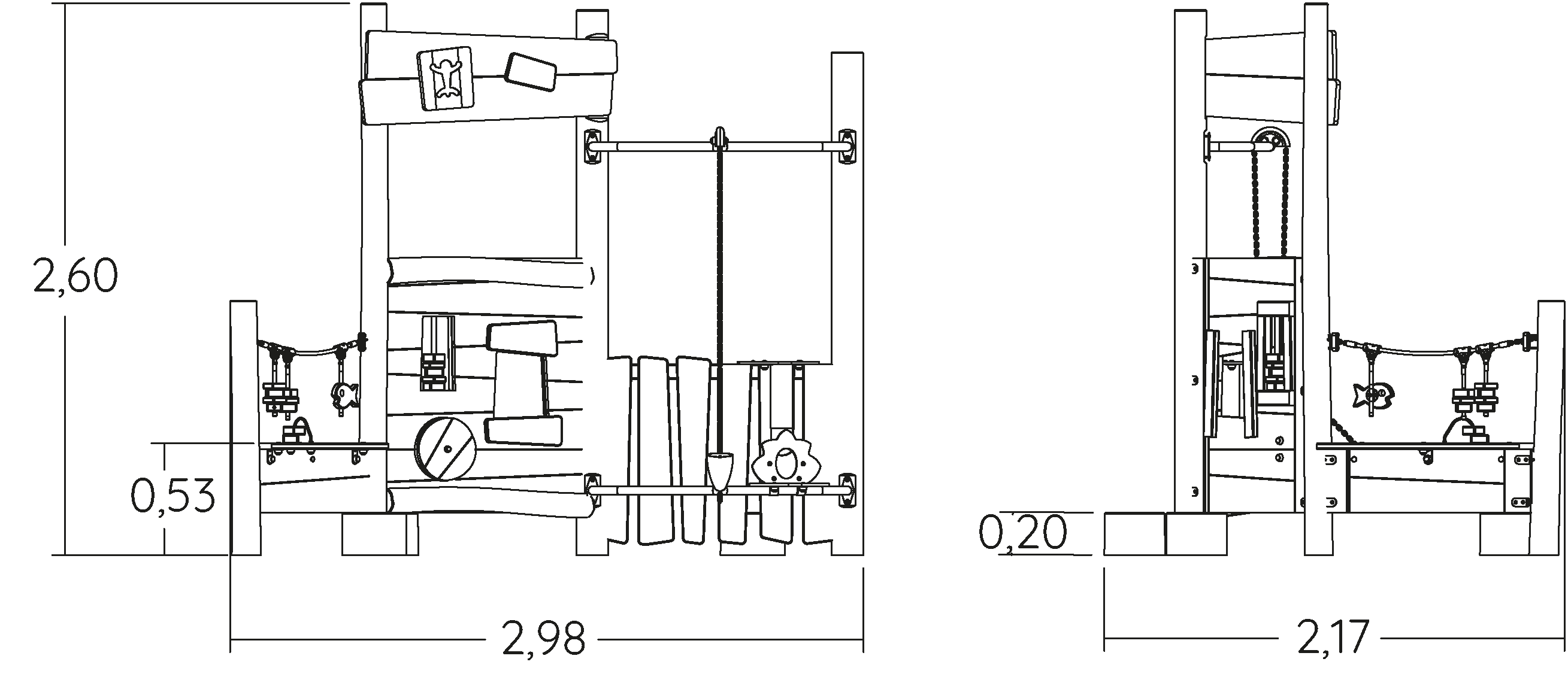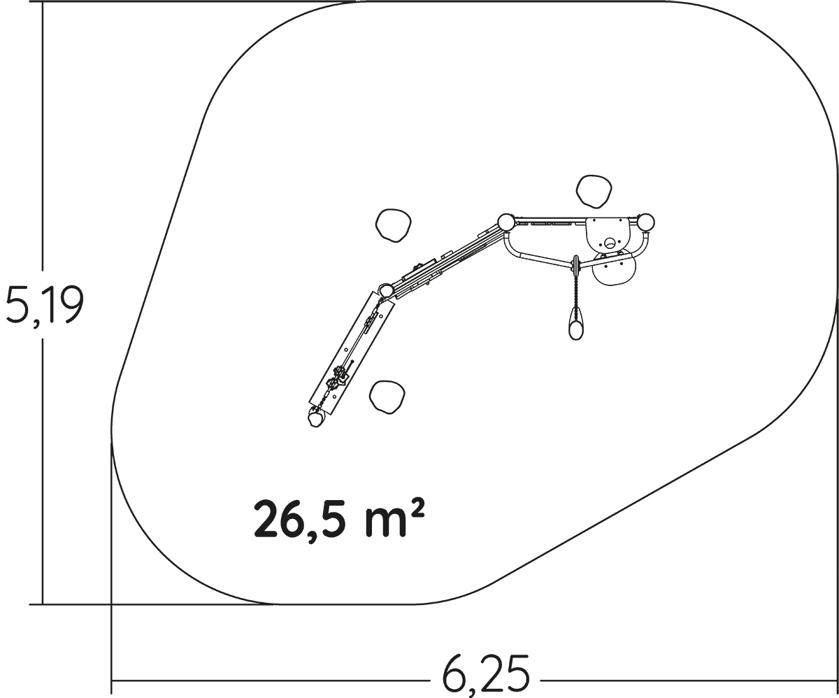 Wymiary modułu to: 2,98 m długość, szerokość: 2,17 m, wysokość: 2,60 m. Wysokość swobodnego upadku wynosi 0,60 m.