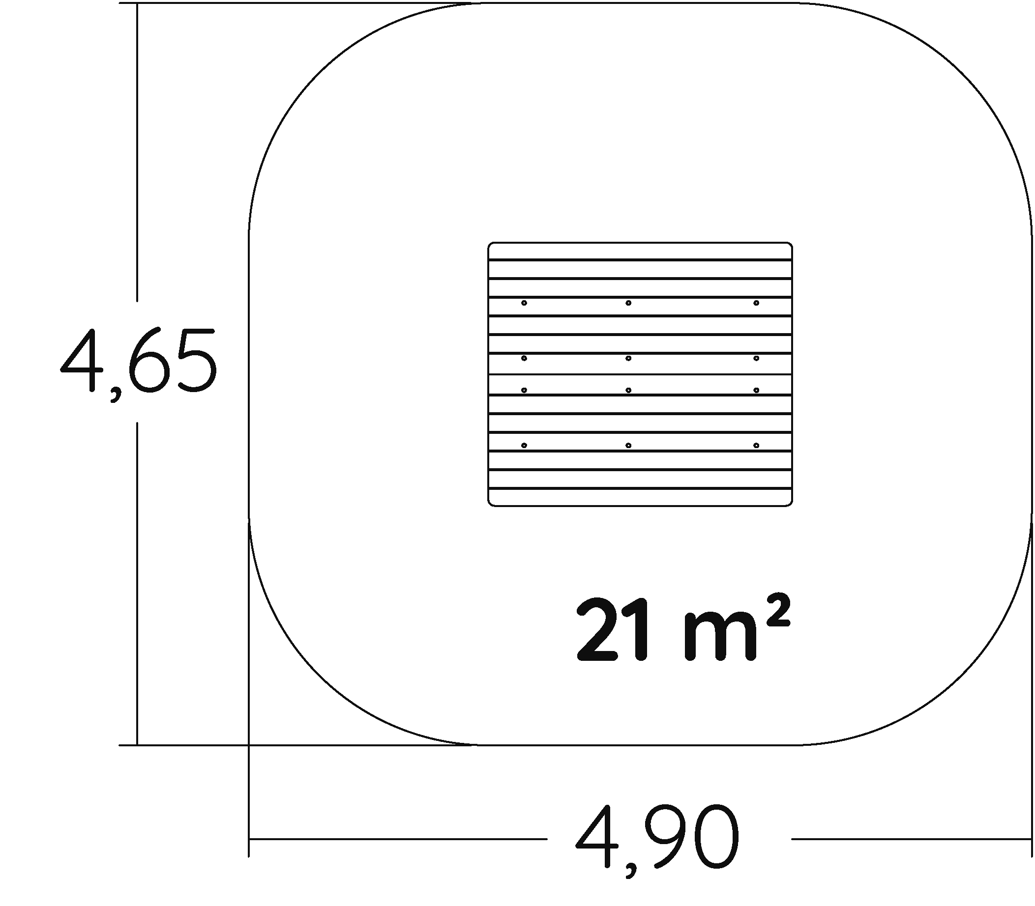 Wymiary modułu to: 1,90 m długość, szerokość: 1,65 m, wysokość: 1,80 m. Wysokość swobodnego upadku wynosi 0,60 m.