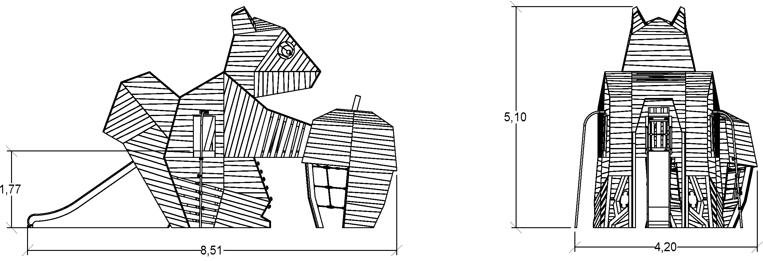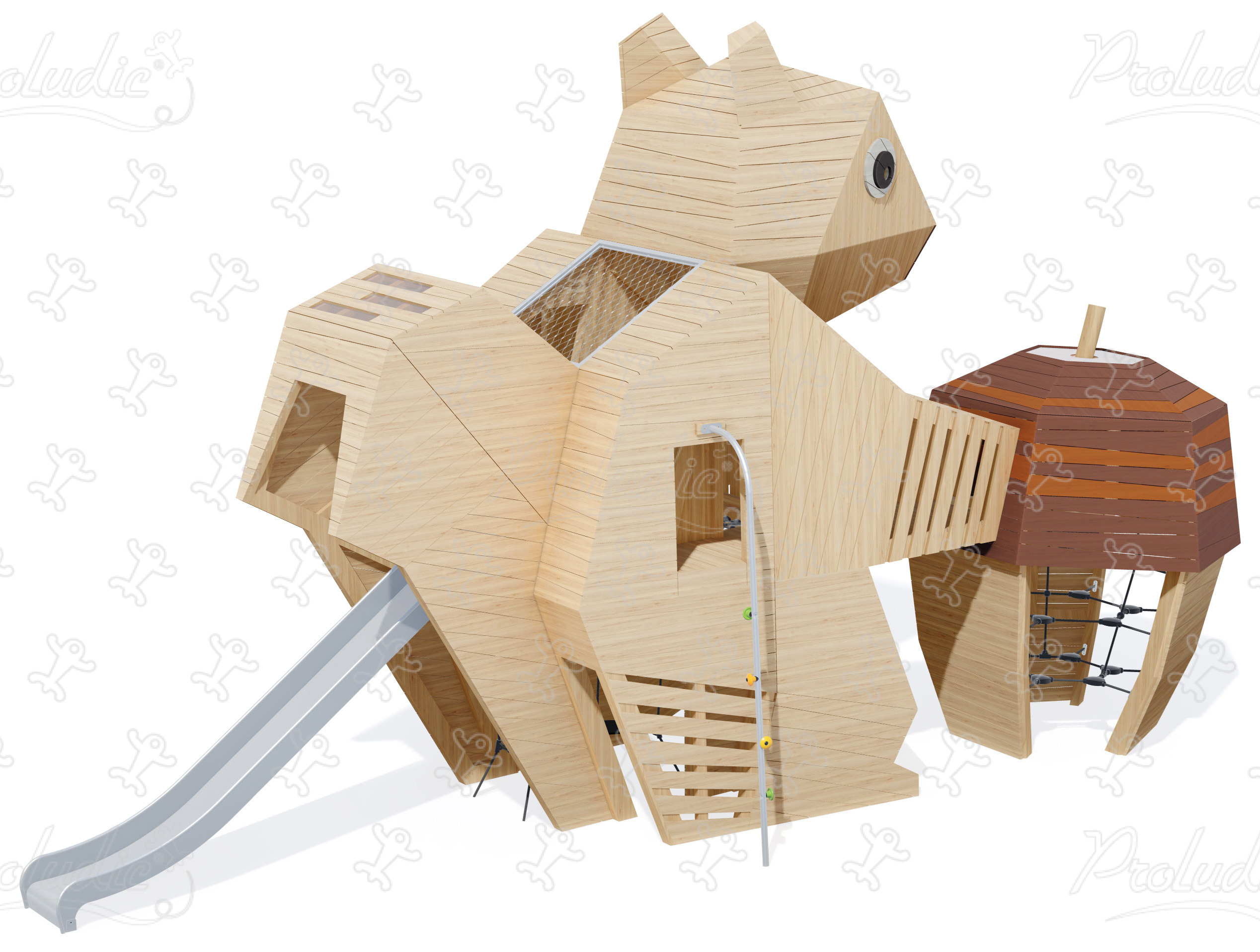 Olbrzymia wielofunkcyjna drewniana konstrukcja do zabawy ze zjeżdżalnią - Wiewiórka - J49196®