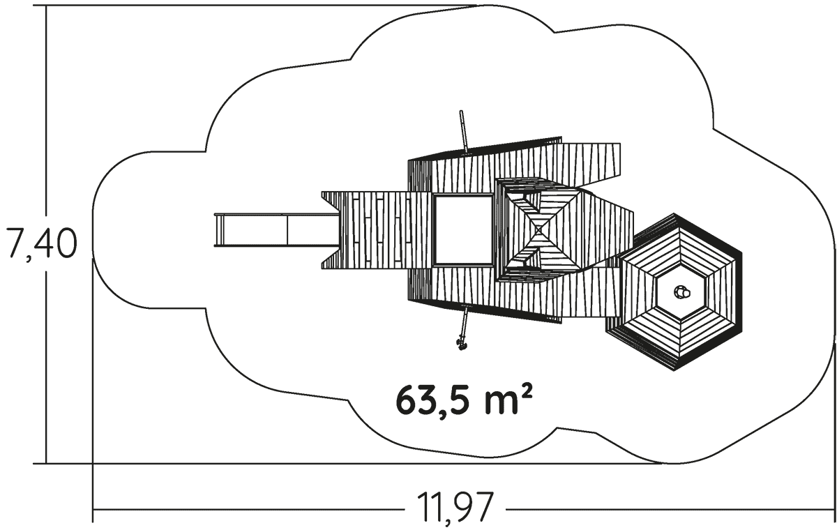 Wymiary modułu to: 8,51 m długość, szerokość: 4,20 m, wysokość: 5,10 m. Wysokość swobodnego upadku wynosi 1,77 m.