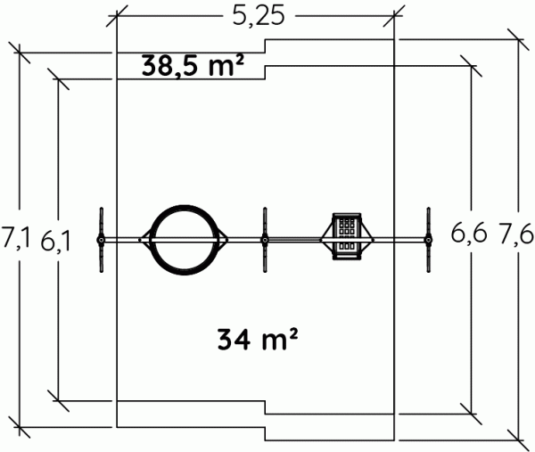 Wymiary modułu to: 6,38 m długość, szerokość: 1,21 m, wysokość: 2,62 m. Wysokość swobodnego upadku wynosi 1,65 m.