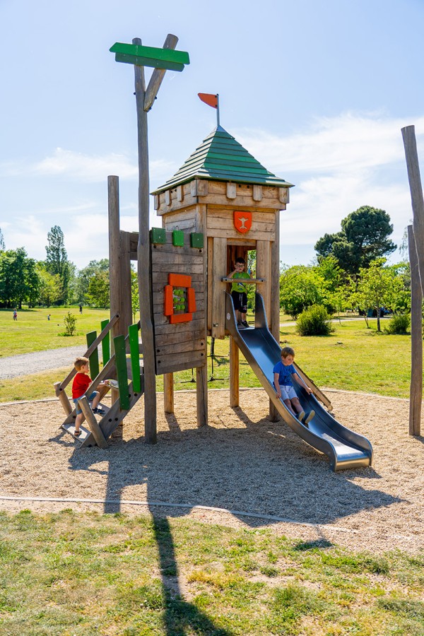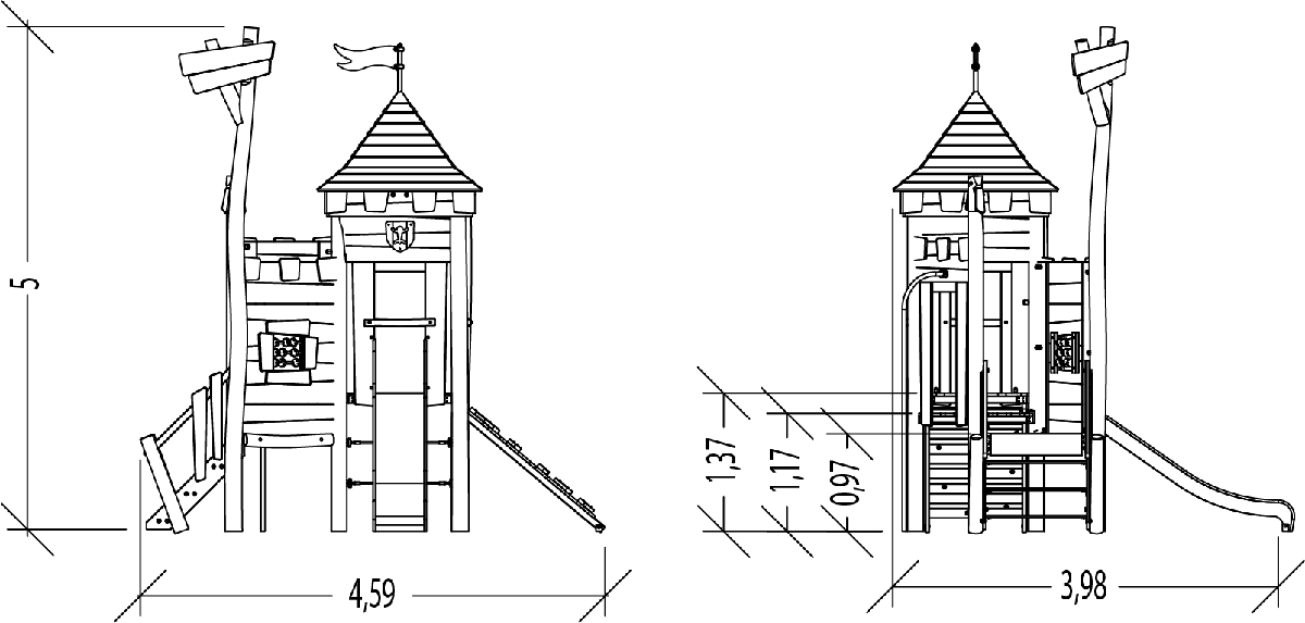 Lochy - Drewniane wyposażenie wielofunkcyjne z wieżą, ścianką wspinaczkową i zjeżdżalnią - J49203®