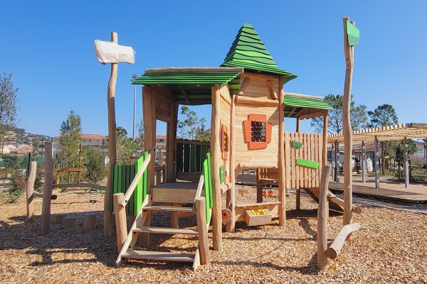 Średniowieczna Wioska - Drewniane urządzenie wielofunkcyjne ze ścieżką do balansowania - J49204®