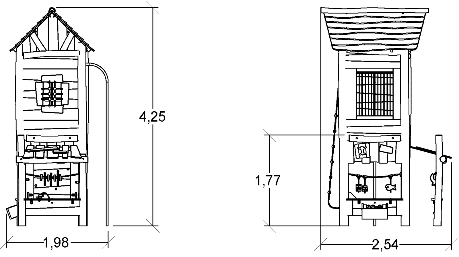 Wymiary modułu to: 2,54 m długość, szerokość: 1,98 m, wysokość: 4,25 m. Wysokość swobodnego upadku wynosi 2,17 m.