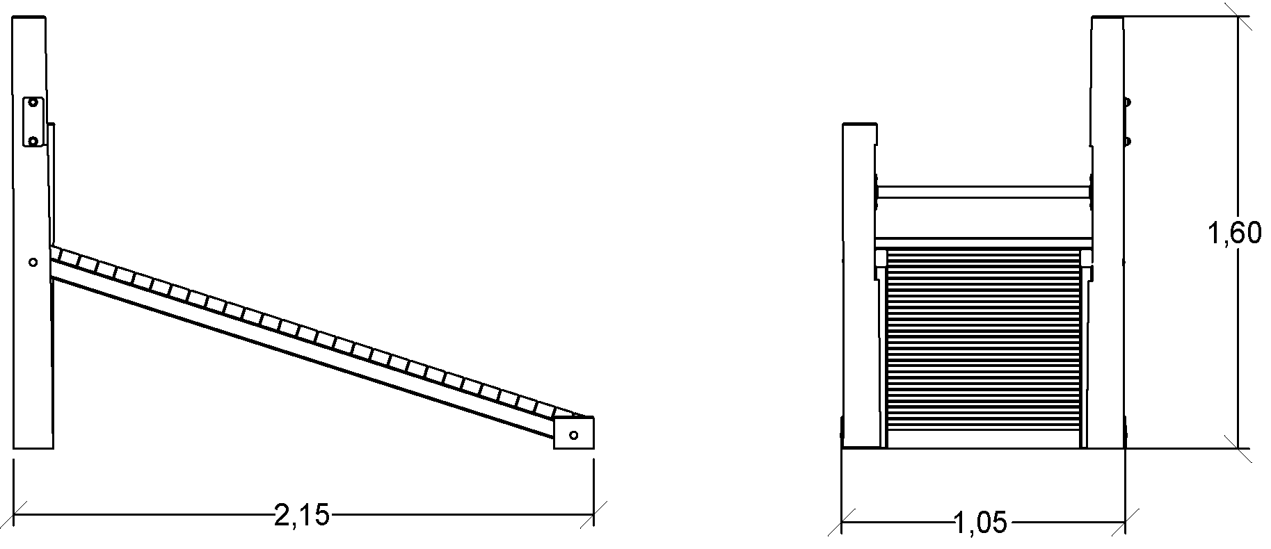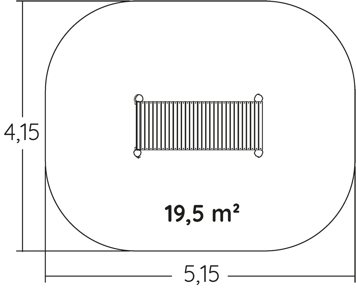 Wymiary modułu to: 2,15 m długość, szerokość: 1,05 m, wysokość: 1,60 m. Wysokość swobodnego upadku wynosi 1,00 m.