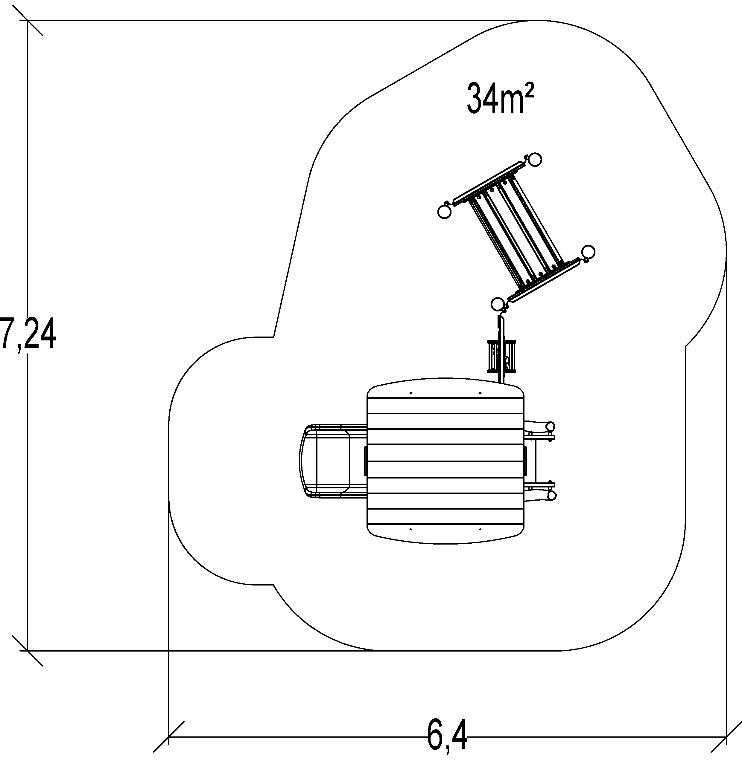 Wymiary modułu to: 4,45 m długość, szerokość: 3,40 m, wysokość: 2,66 m. Wysokość swobodnego upadku wynosi 1,00 m.