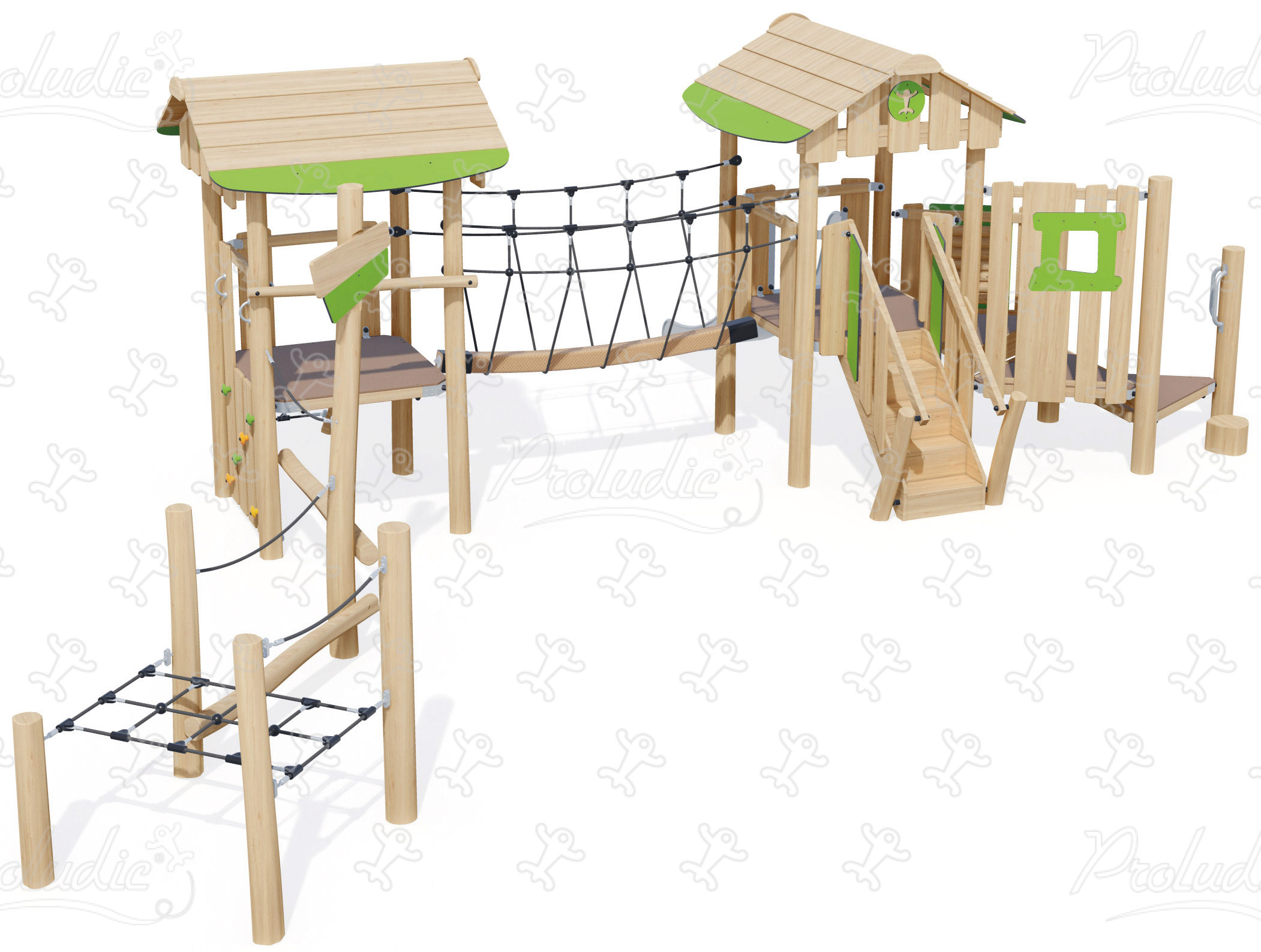 Drewniana konstrukcja do zabawy dla małych dzieci ze zjeżdżalnią, kabinami, linami i panelami sensorycznymi - J49255®