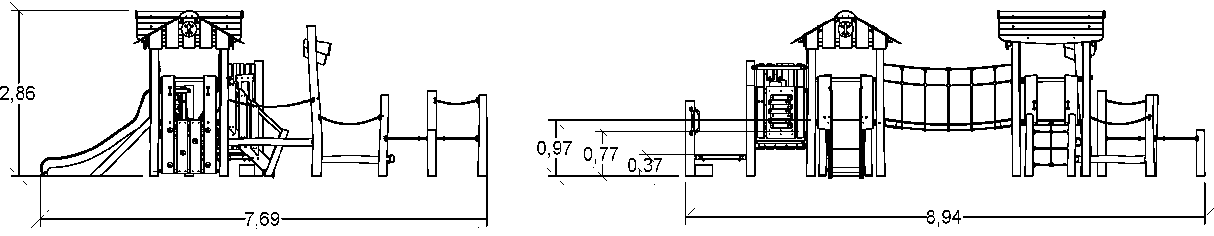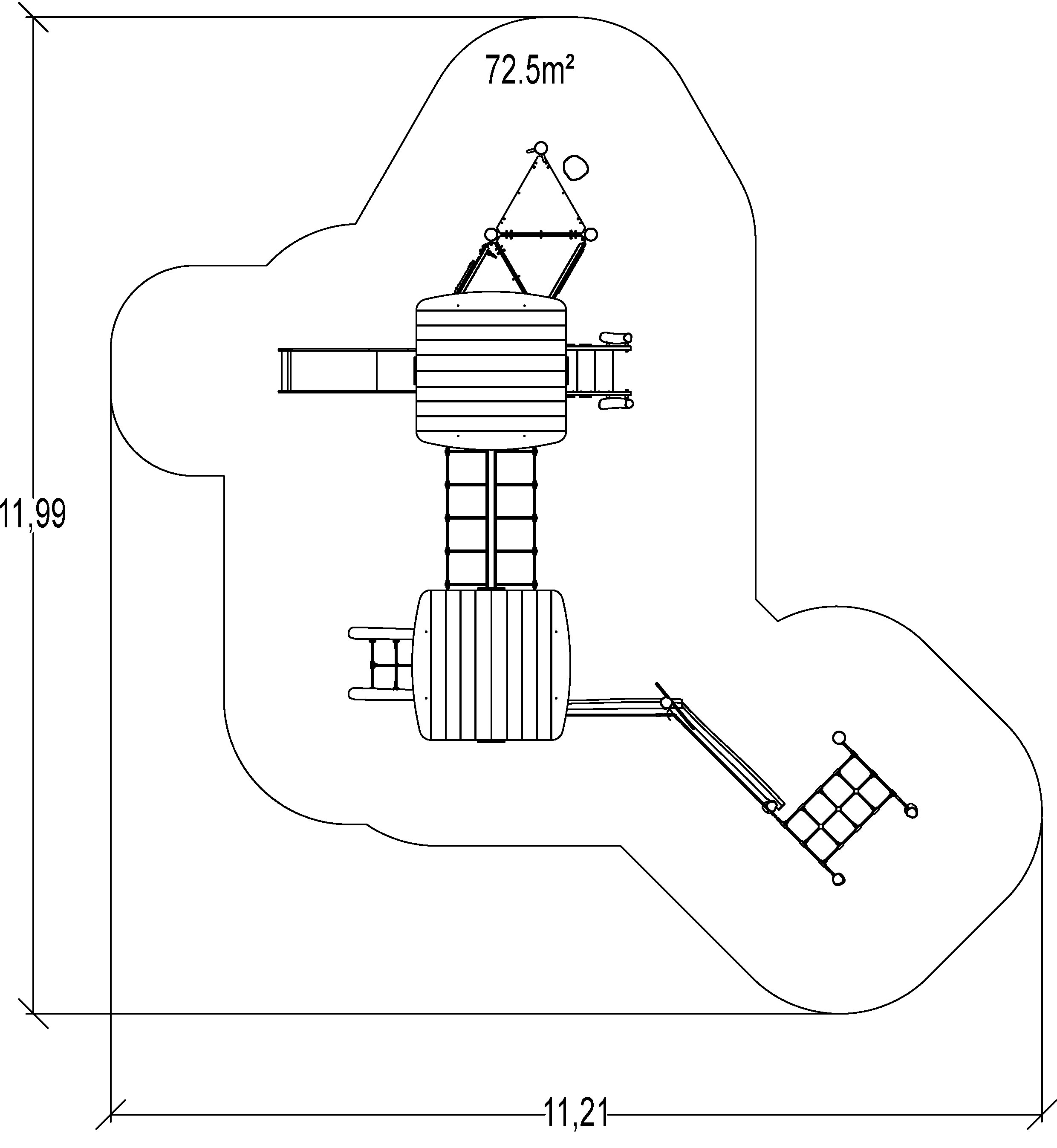 Wymiary modułu to: 8,94 m długość, szerokość: 7,69 m, wysokość: 2,86 m. Wysokość swobodnego upadku wynosi 1,00 m.