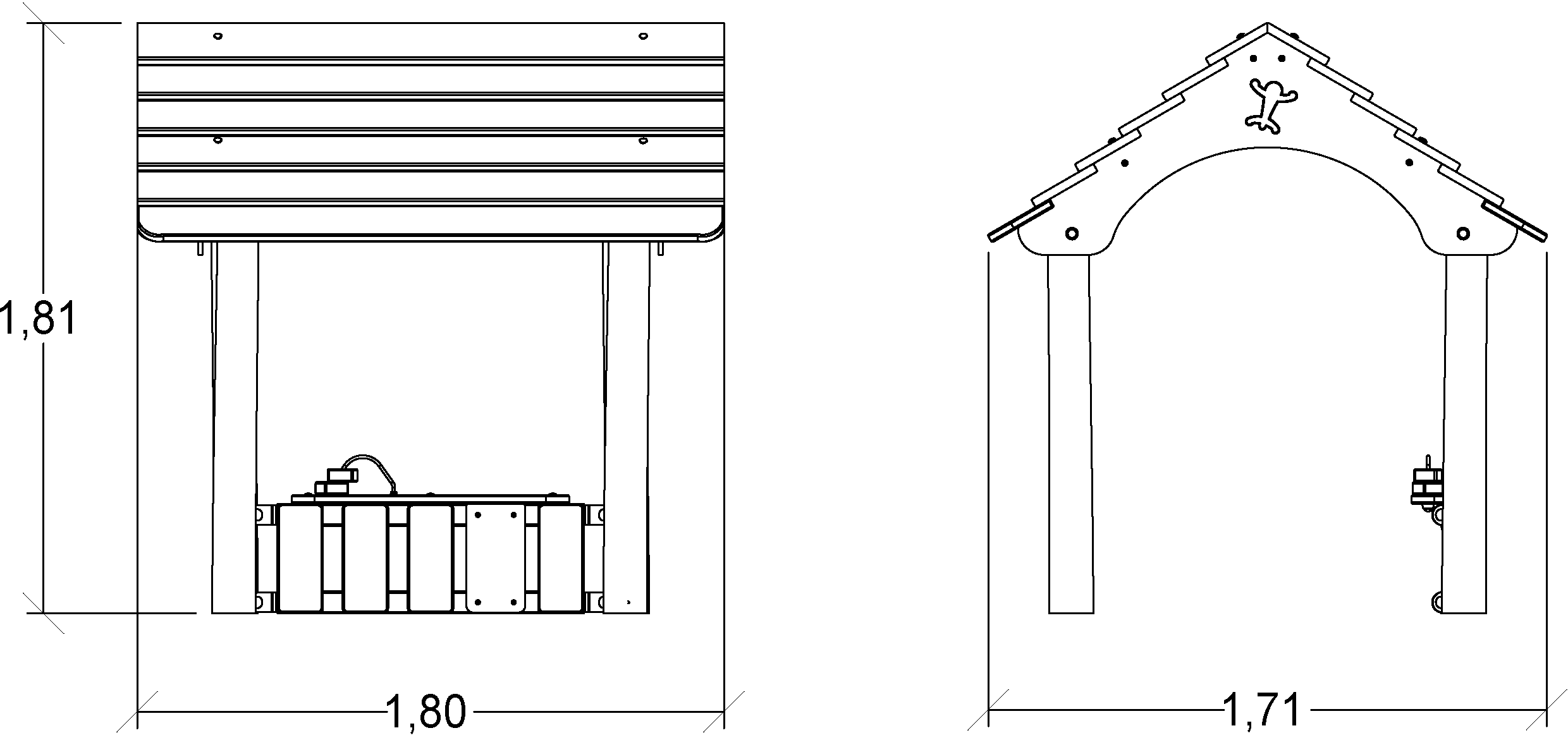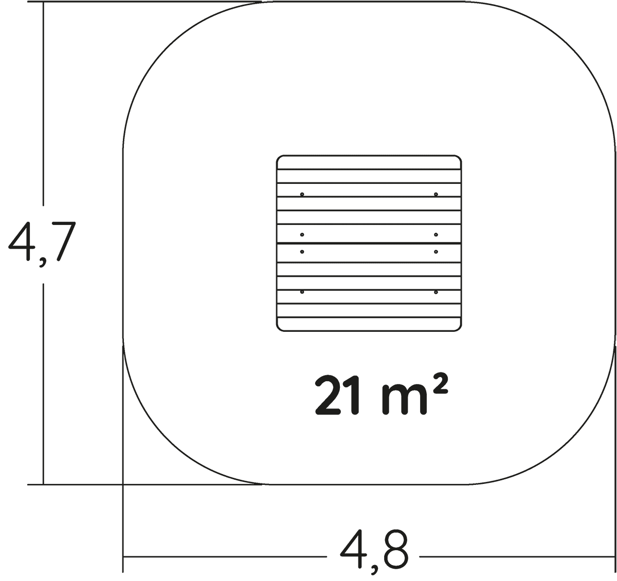 Wymiary modułu to: 1,80 m długość, szerokość: 1,71 m, wysokość: 1,82 m. Wysokość swobodnego upadku wynosi 0,60 m.