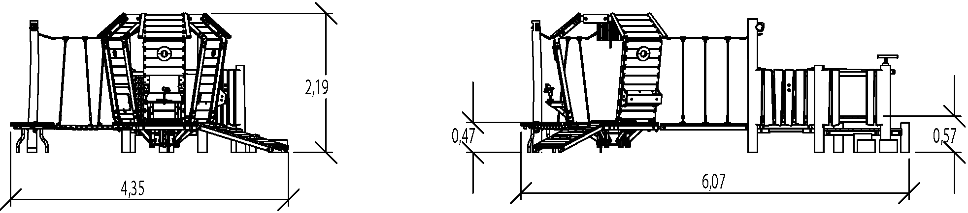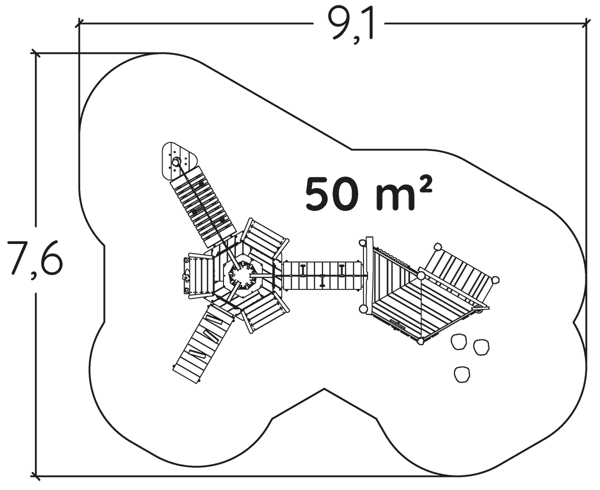 Wymiary modułu to: 6,07 m długość, szerokość: 4,35 m, wysokość: 2,19 m. Wysokość swobodnego upadku wynosi 0,60 m.