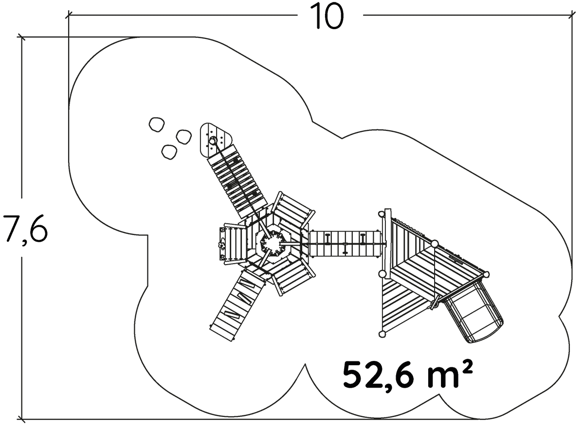 Wymiary modułu to: 7,06 m długość, szerokość: 4,49 m, wysokość: 2,19 m. Wysokość swobodnego upadku wynosi 1,00 m.