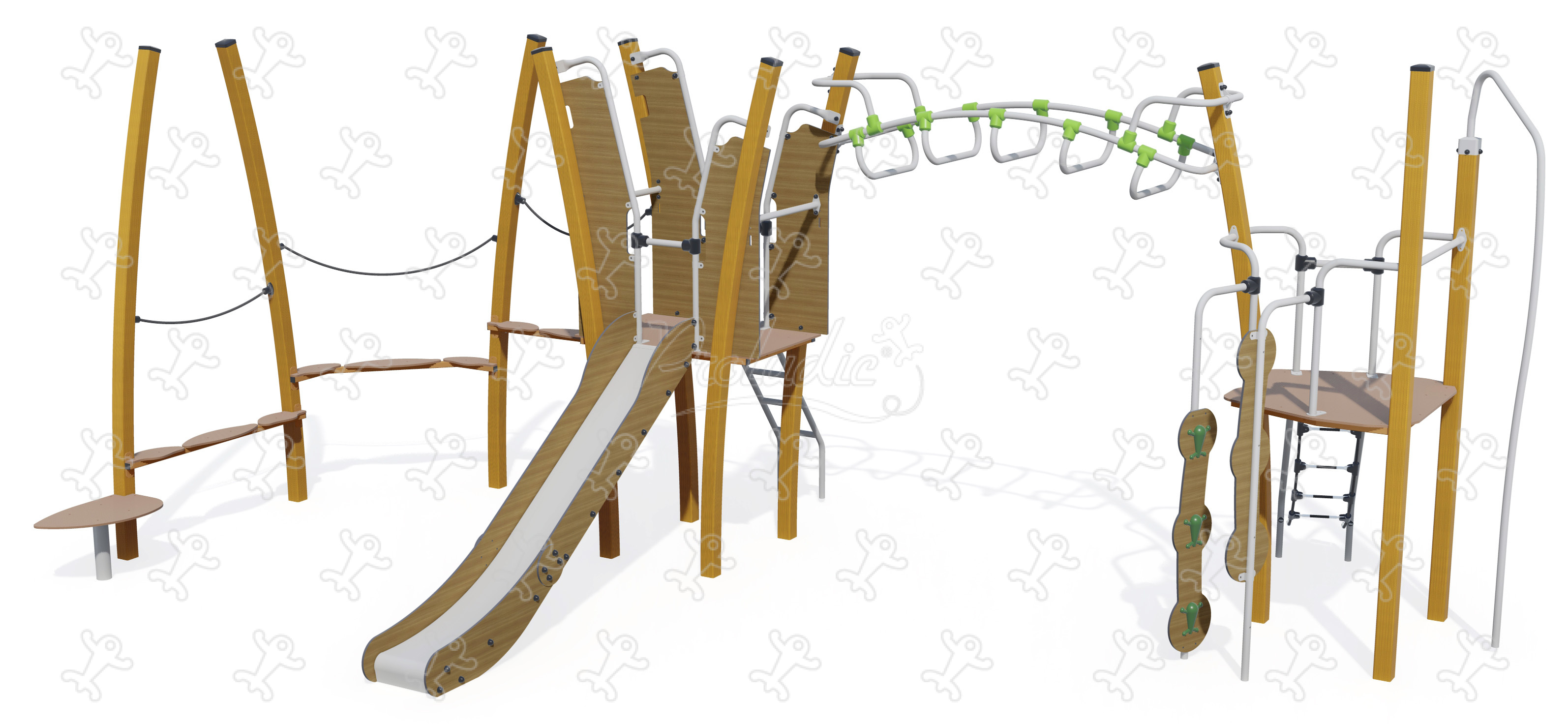 Urządzenie wielofunkcyjne z aktywnościami wspinaczkowymi, ścieżką do balansowania i zjeżdżalnią w kolorze drewna, dla 18 użytkowników - J5618-C®