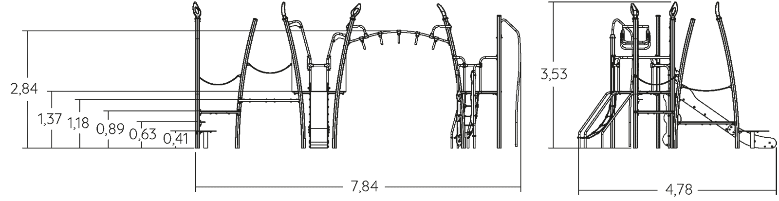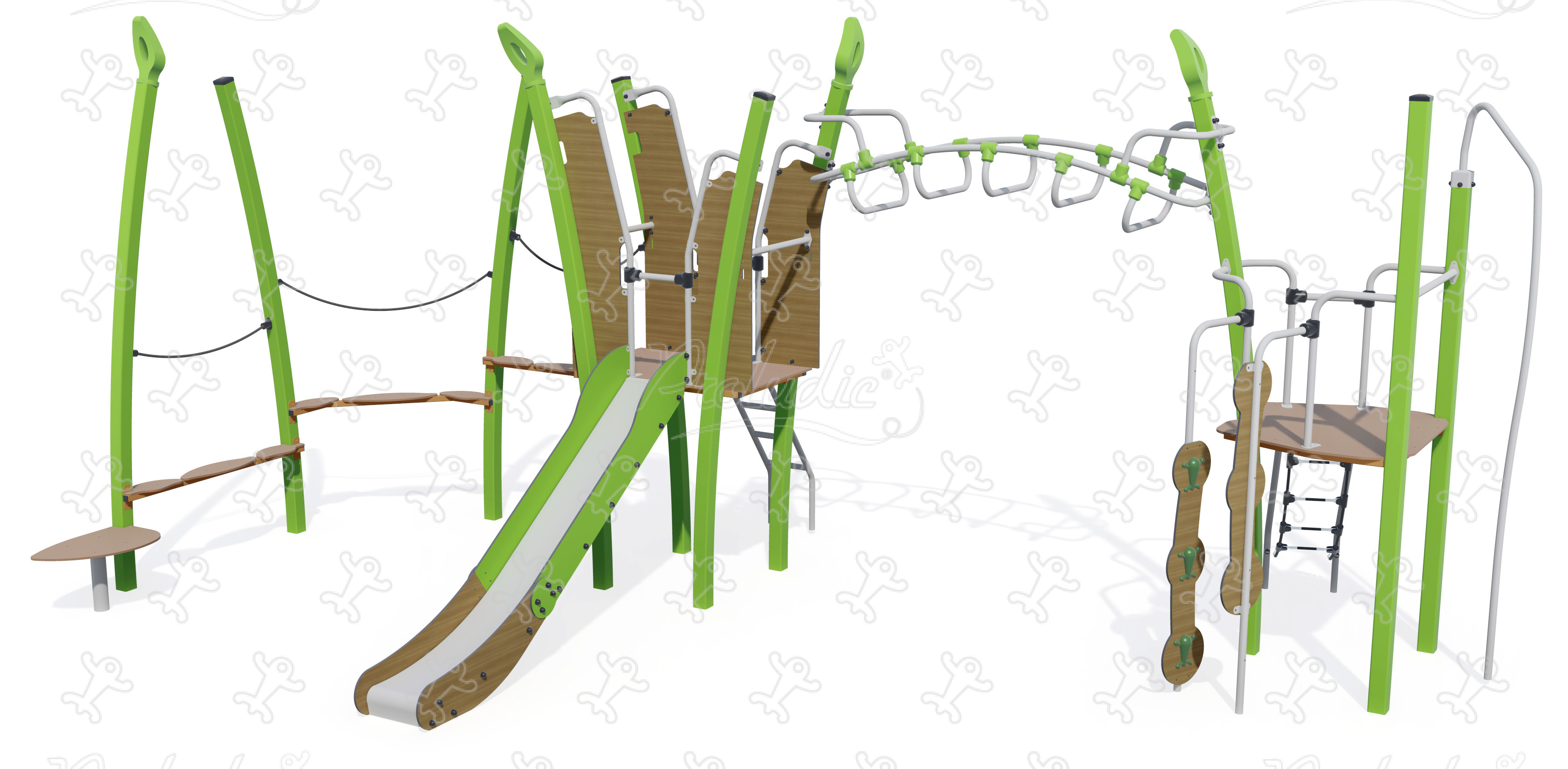 Urządzenie wielofunkcyjne z aktywnościami wspinaczkowymi, ścieżką do balansowania i zjeżdżalnią, dla 18 użytkowników - J5618®