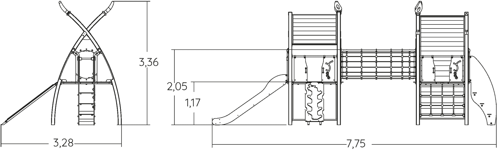 Wymiary : 7,75 × 3,27 × 3,07 m