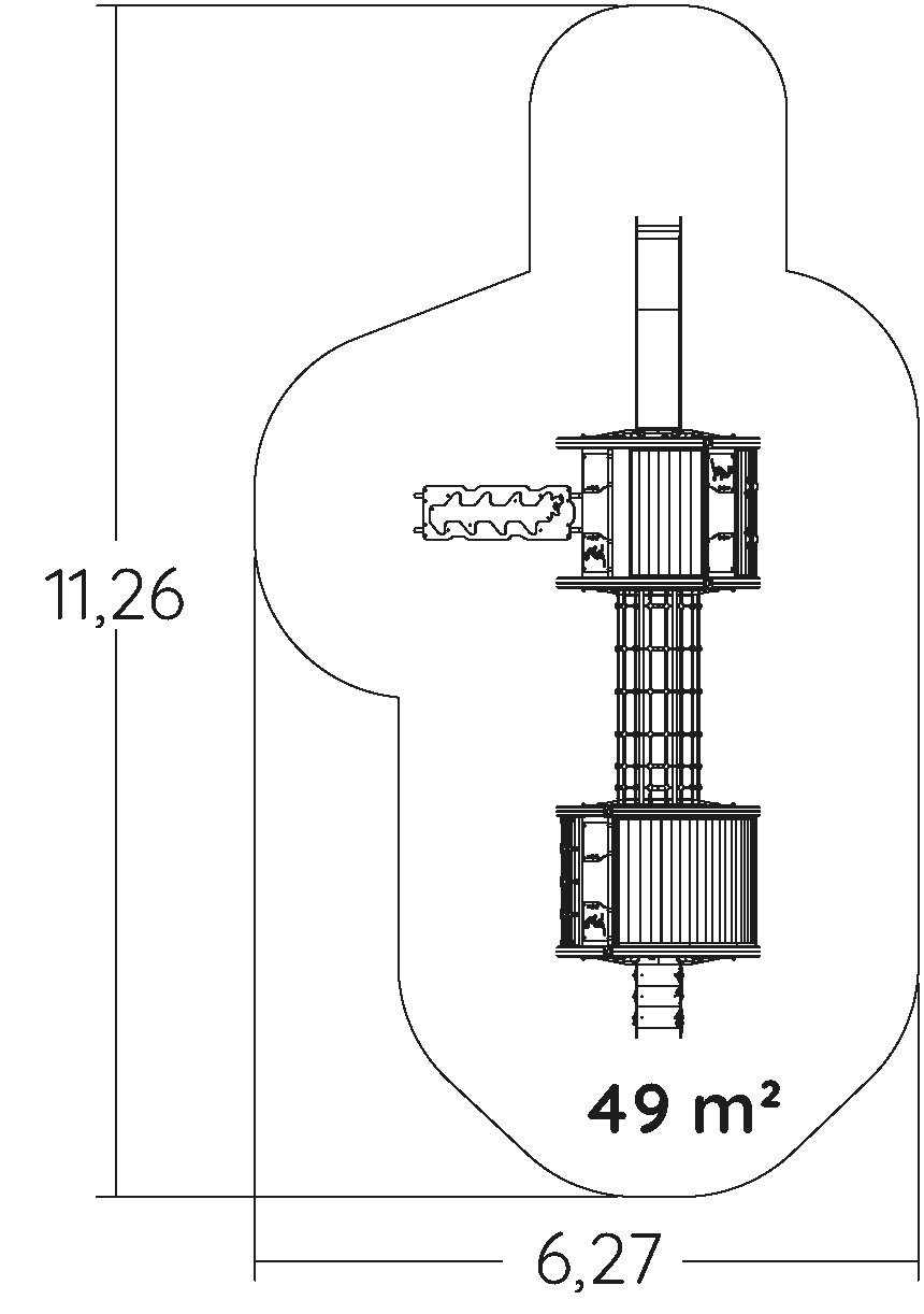 Wymiary modułu to: 7,75 m długość, szerokość: 3,27 m, wysokość: 3,07 m. Wysokość swobodnego upadku wynosi 1,17 m.