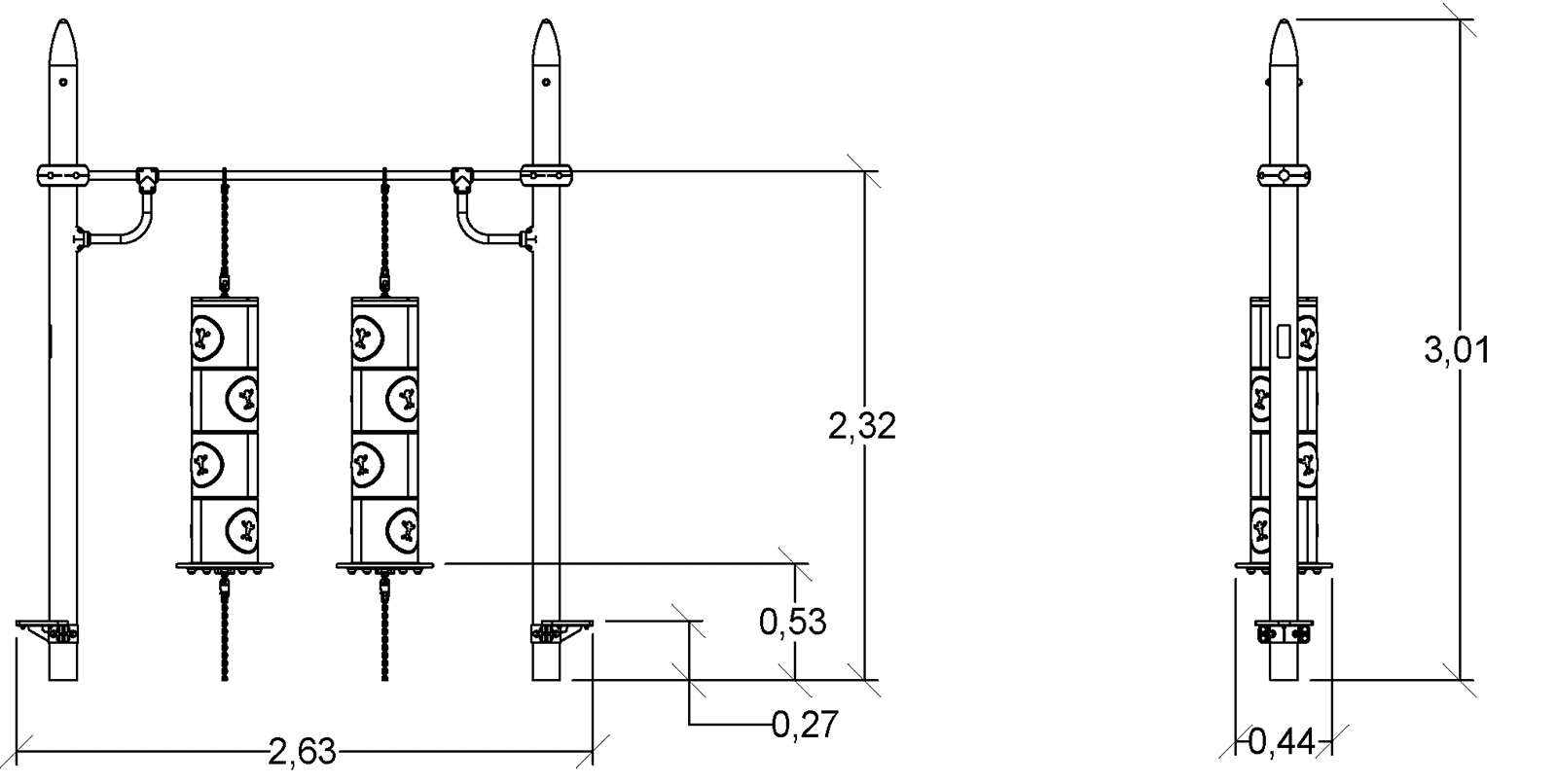 Wymiary modułu to: 2,63 m długość, szerokość: 0,44 m, wysokość: 3,01 m. Wysokość swobodnego upadku wynosi 0,60 m.