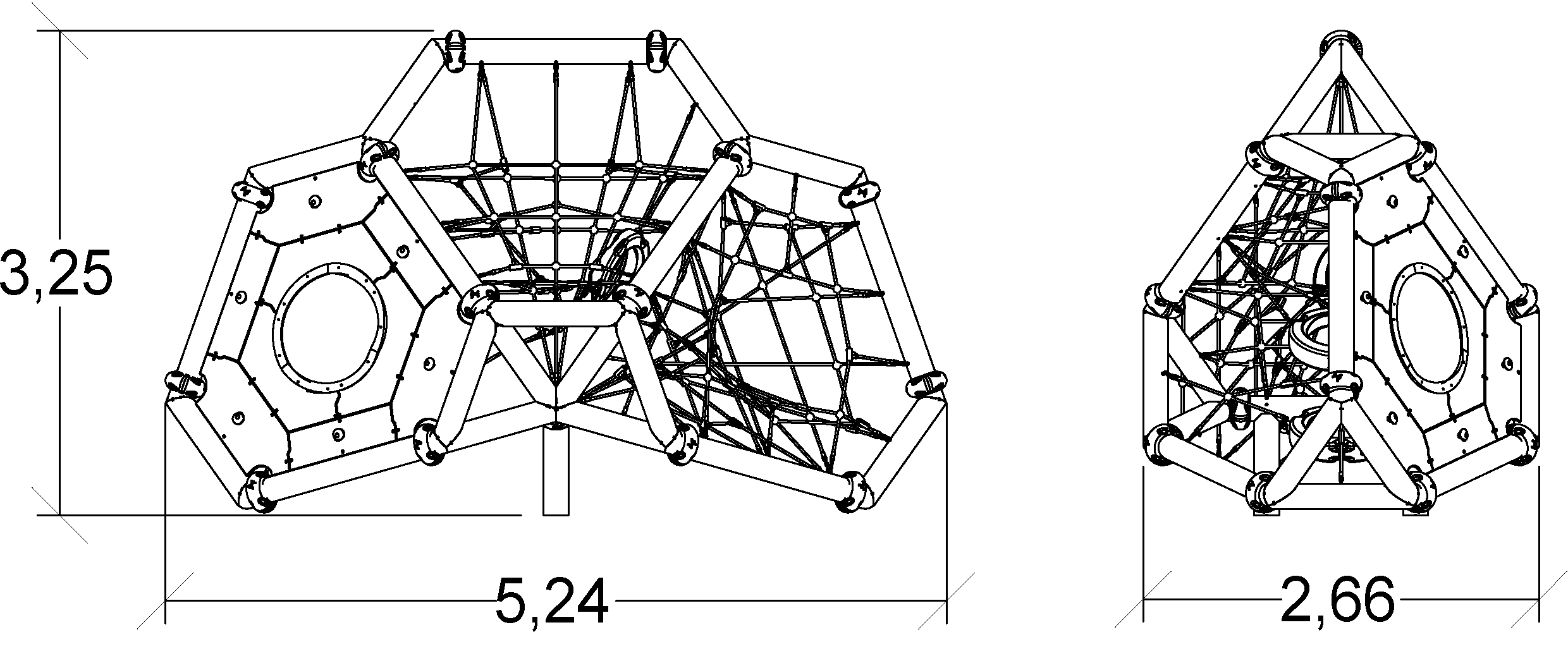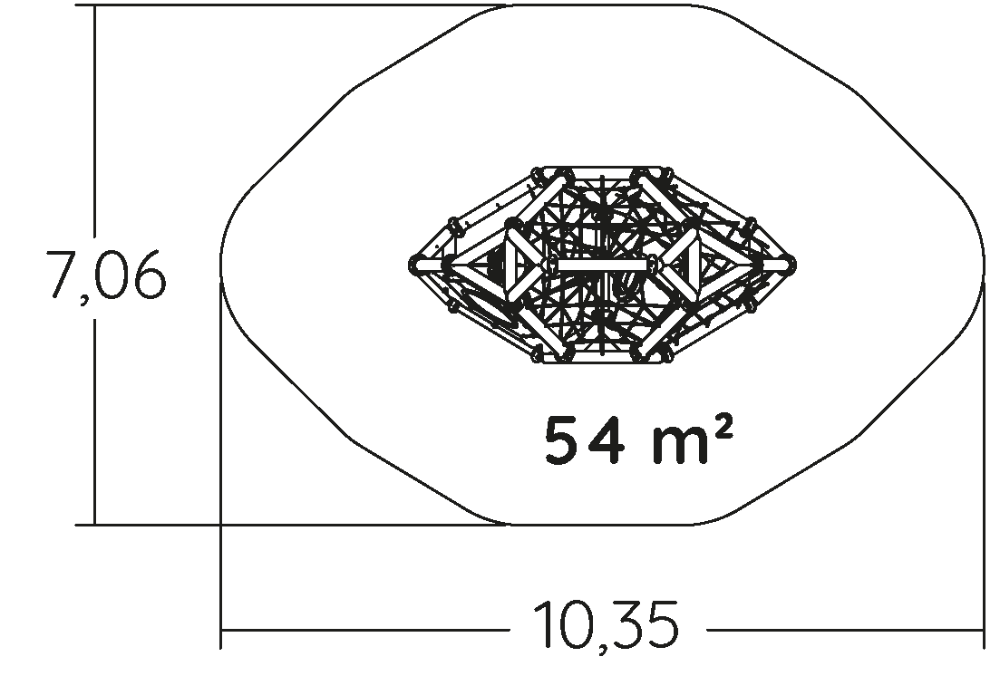 Wymiary modułu to: 5,24 m długość, szerokość: 2,66 m, wysokość: 3,25 m. Wysokość swobodnego upadku wynosi 2,50 m.